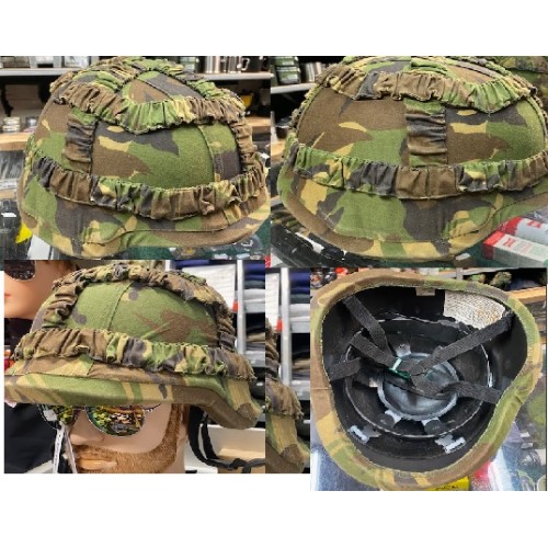 ook zeer geschikt voor airsoft,, helm is one-size en verstelbaar binnenin, optie A: alleen de helm, optie B: met woodland dekje (maat Large)