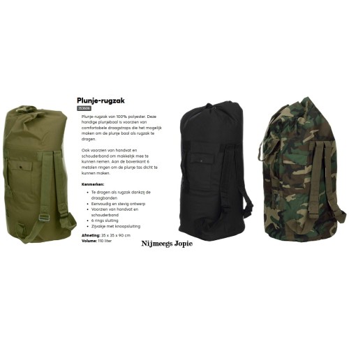 Plunjezak-rugzak van 100% nylon
