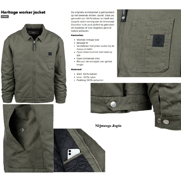 De originele workerjacket is geïnspireerd op het bekende Worker Jacket. Deze jas is gemaakt van 100% katoen en heeft een soepele nylon voering aan de binnenzijde. Daardoor is dit jack perfect te gebruiken als tussenjas of voor dagelijks gebruik tijdens werkuren.