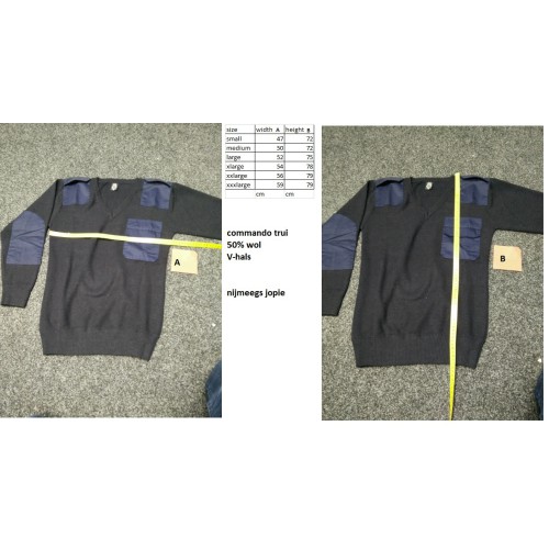 commando trui, 50% wol, met V-hals, zwart, fostex