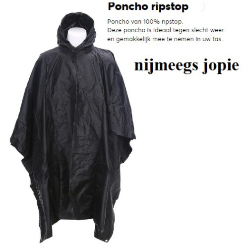 Wandelponcho, nylon met waterdicht laagje aan binnenkant. ideaal bij reizen met een rugzak, afmeting ca 140 breed en lengte 110 cm (voor en achterzijde elk ca 110cm). Zijkant open met drukknoopsluiting op zijkant, kan ook als tarp gebruikt worden. Zeer klein opvouwbaar en licht.