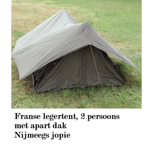tent, 2 persoon tent frans leger, met apart los dak, groen