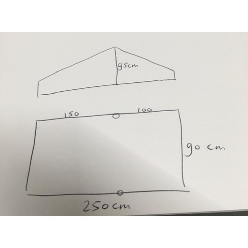 lengte van links naar rechts ca 250 cm, hoogste punt  ca 95 cm
