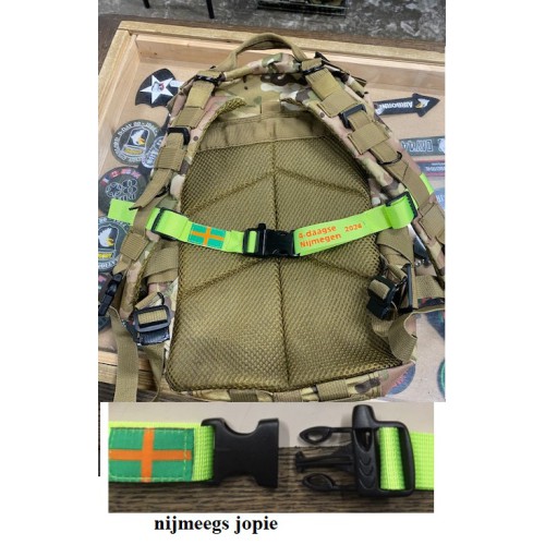 rugzak bandje, oranje of groen, met 4-daagse vlaggetje
