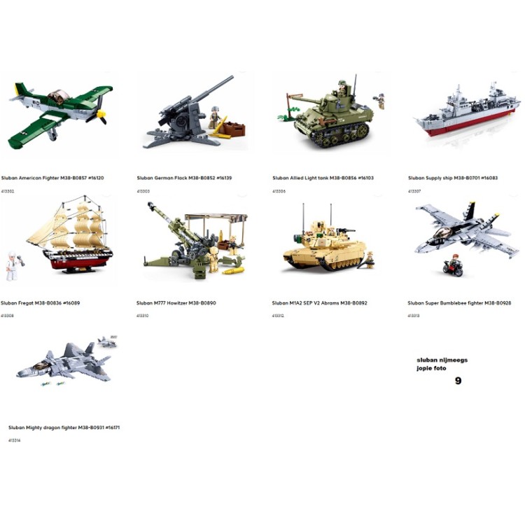 Op deze overzichtsfoto's ziet u het grote assortiment van sluban, mail of bel even mbt foto nummer en of artikelnaam en wij gaan kijken of deze leverbaar is en wat de prijs ervan is, als artikel leverbaar is, is de levertijd enkele dagen