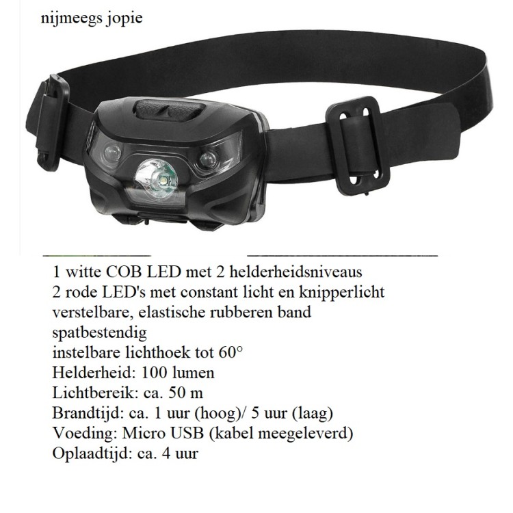 hoofdlamp oplaadbaar met witte en rode leds, max